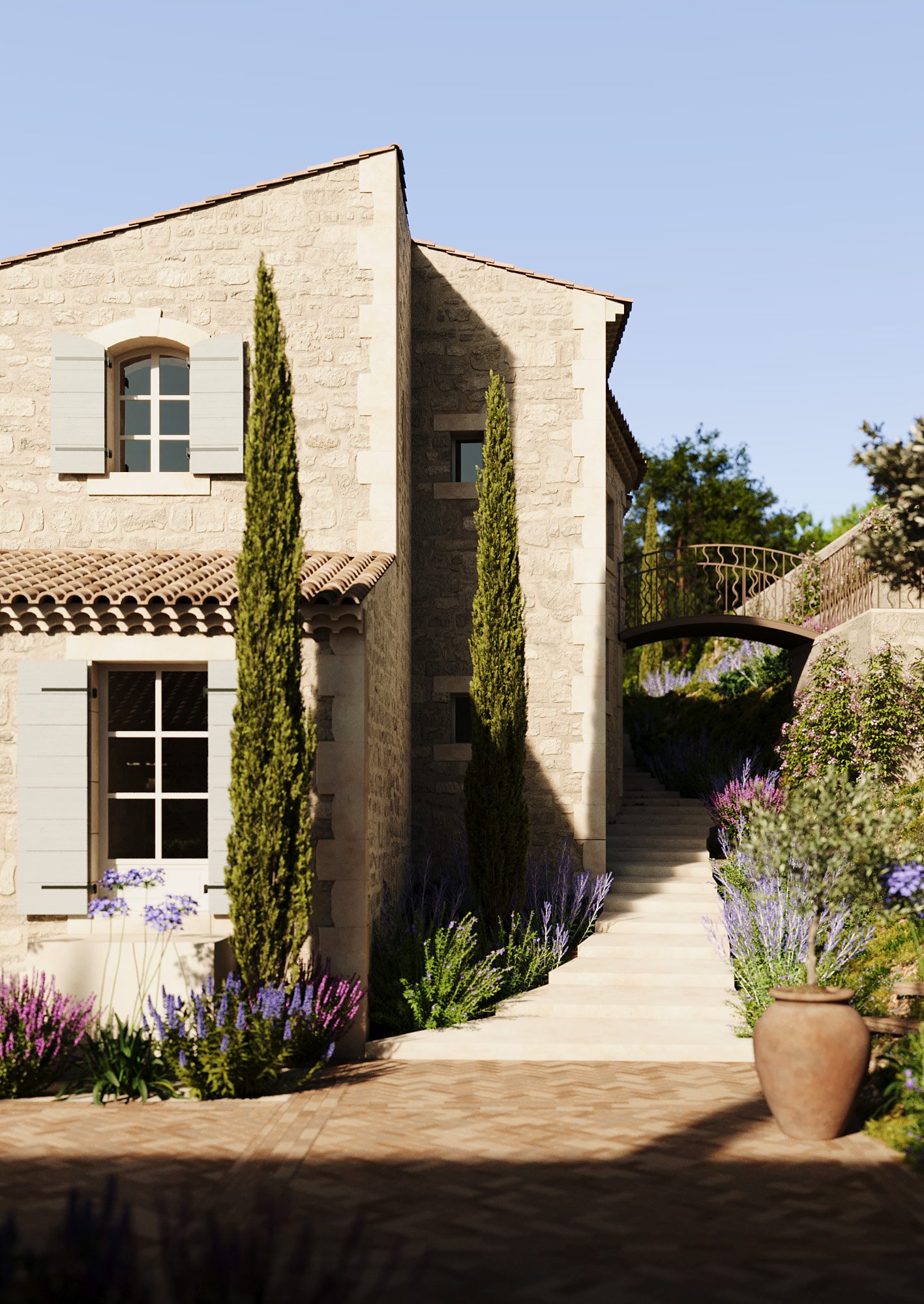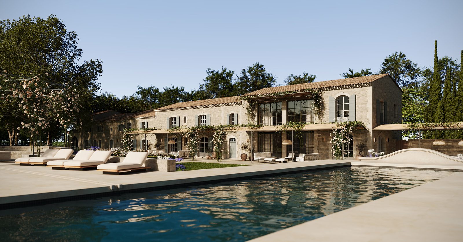 Presque trois hectares dans les Alpilles. Une allée de platanes qui existait avant nous. Huit suites qui s'ouvrent les unes sur les autres ou se ferment selon les envies. Un bassin, un court de tennis, un potager — pas comme des équipements, comme des habitudes. Le Grand Mas est une maison faite pour être habitée à plusieurs, longuement.